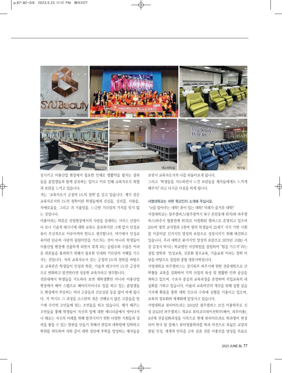 Beauty life(뷰티 라이프)매거진 미용학과 특집(학과 홍보)