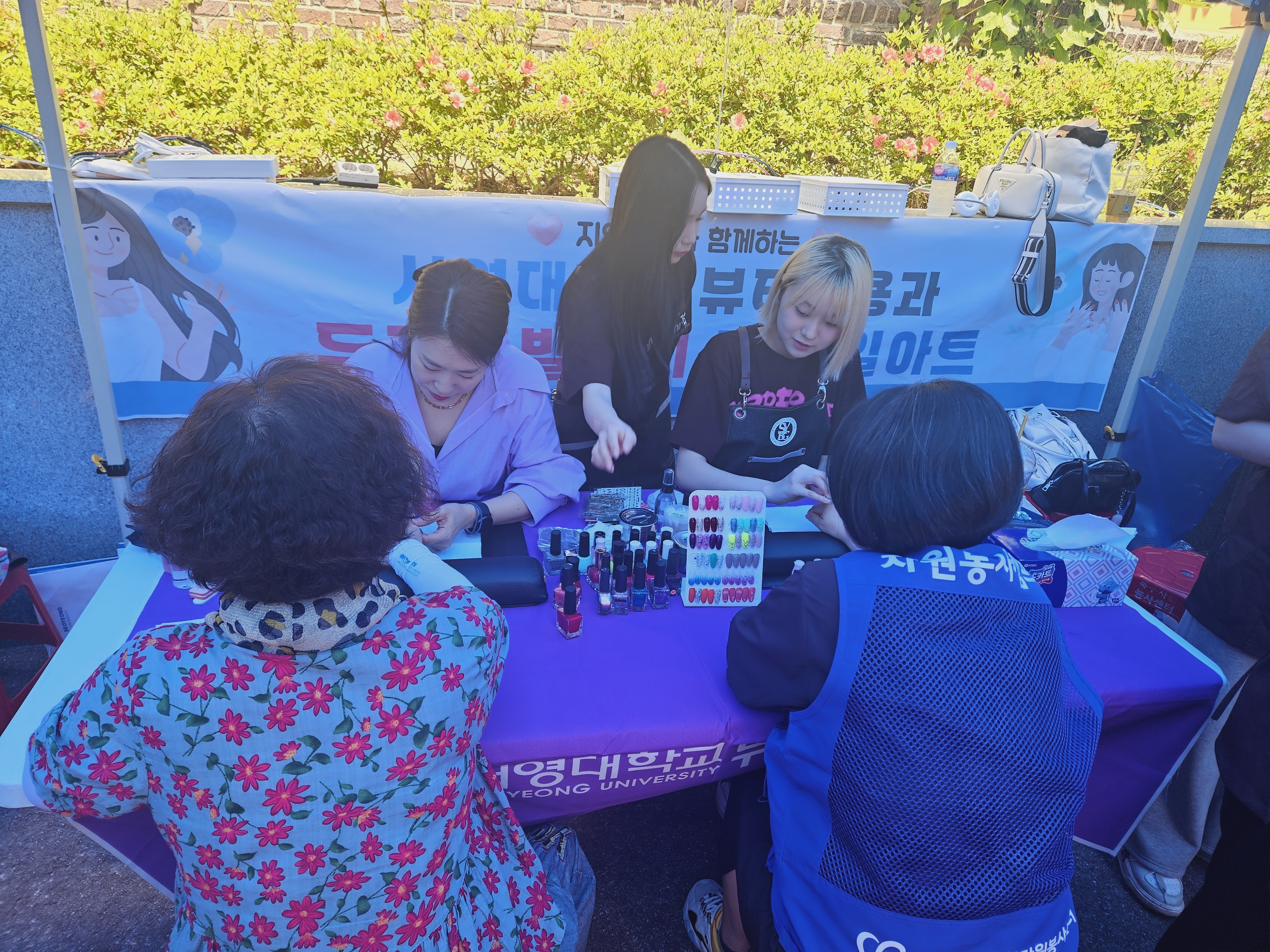 ○ 서영대학교 뷰티미용과는 2024 광주광역시 (사)북구종합자원봉사센터 거점 자원봉사 캠프 박람회에 “두피모발관리 및 네일아트”로 봉사를 실시하였다.