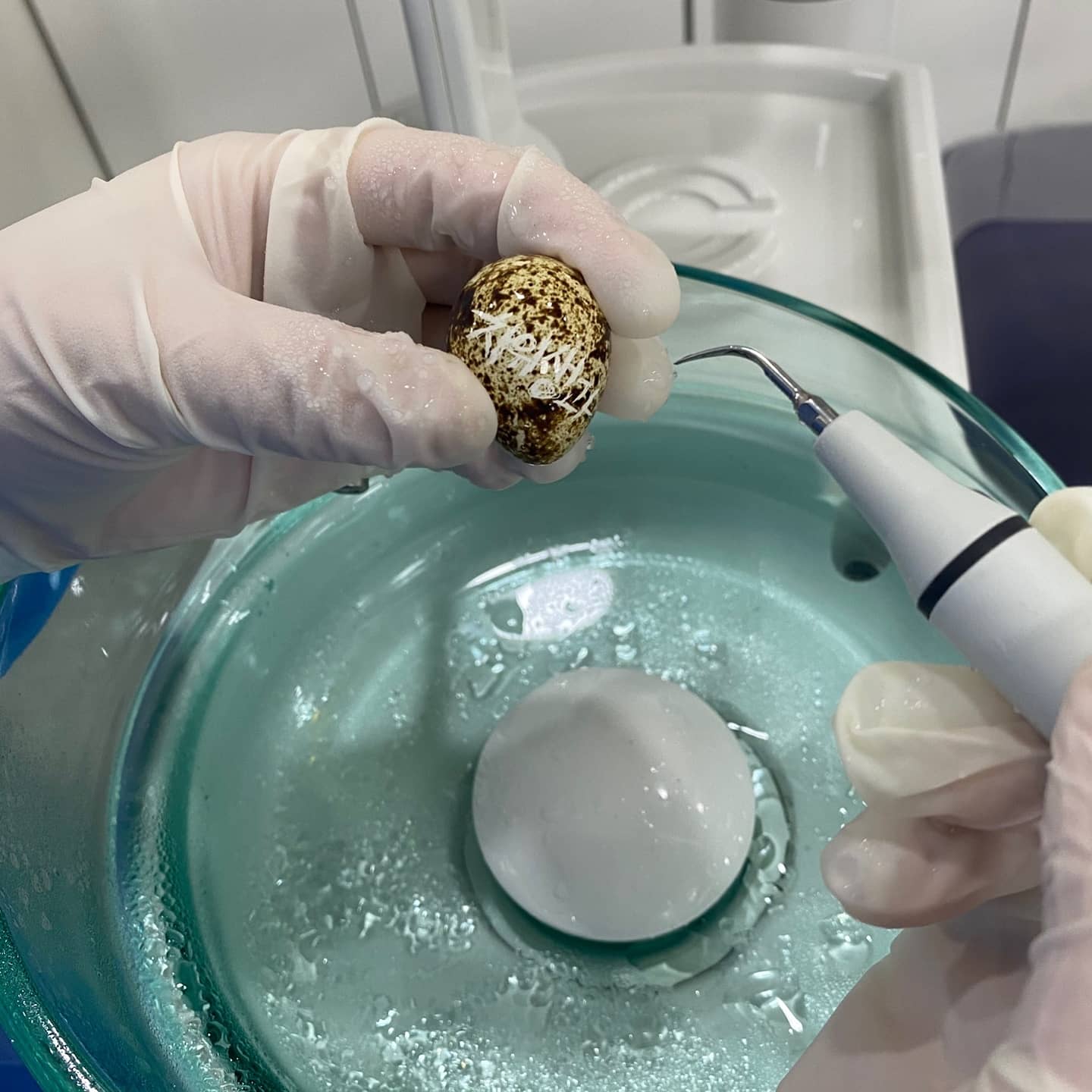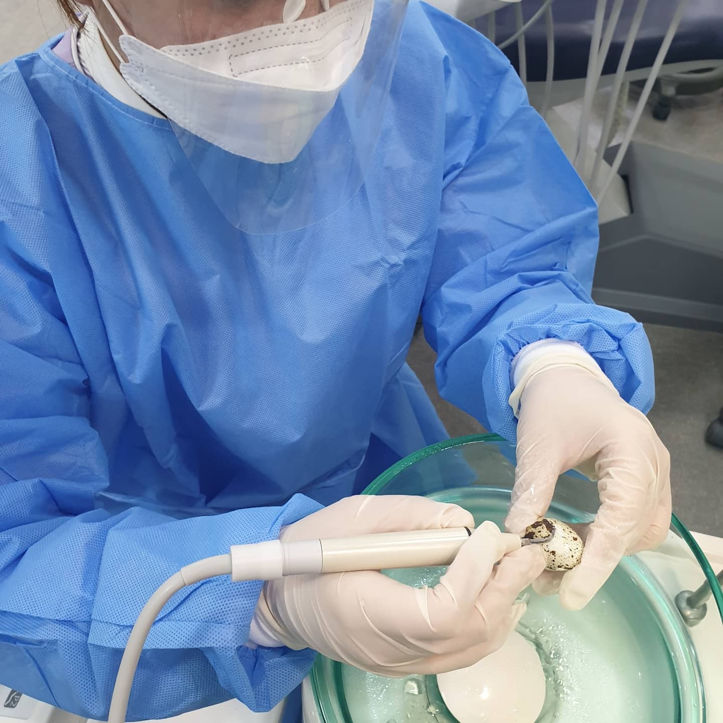 개인보호장구 착용하며, 메추리알과 덴티폼에 진행하였습니다~