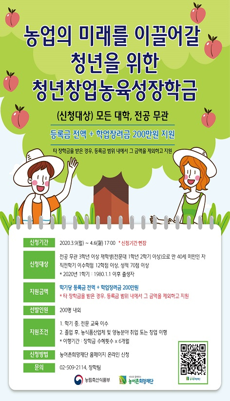 청년창업농육성장학생 추가모집