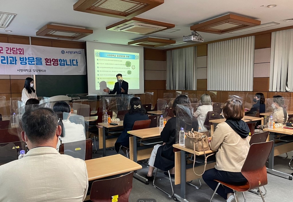 서영대학교 임상병리과에서는 2021학년도 학부모님을 초청하여 학과소개 및 향후 면허취득과 취업을 위한 학과의 노력에 대해 학부모님과 소통의 시간을 마련하였습니다. 늦은 시간에도 불구하고 학과장(조영국교수)을 비롯한 소속교수님들과 3학년 학부모님 20여분이 함께 학생들의 면허취득과 취업에 대한 다양한 정보와 4학년 전공심화 학사과정에 대한 높은 관심속에서 1시간이 넘는 열띤토론의 시간을 가졌습니다. 이자리에서 2021학년도 3학년 지도를 맡은 조영국교수님은 3학년 학생들의 면허취득을 위한 학습활동의 필요성과 이를 위한 지원노력 그리고 질높은 취업을 위해 가정과 학교의 공동노력을 제안하였으며, 광주전남에서 취업명문학과로서의 위상을 높이기 위해 최선을 다하겠다는 포부를 밝혔습니다. 참석하신 학부모님들은 지도교수님 발표이후 많은 질문을 통해 학생취업 및 면허취득관리의 노력을 확인하시고 뜨거운 박수 갈채를 보내주셨습니다. 간담회 참석하신 어머님께 참석소해를 묻는 질문에는 "대학과 학과교수님들의 노력에 큰 박수를 보내며 굉장히 유익하고 의미있는 시간이였으며, 대학에서 이러한 학부모들과 함께 우리애들을 위해 최선을 다해주고 계시는 것이 너무나도 마음든든하고 감사드리며 이러한 임상병리과 교수님 열정에 정말 감동받았다" 라는 말씀을 전하셨습니다. 다시한번 코로나 상황에서도 3학년 학생들의 면허취득과 학생관리를 위해 최선의 노력을 다하시는 교수님들을 격려를 위해 바쁘신 시간속에서도 참석해주신 임상병리과 3학년 학부모님들께 다시한번 깊은 감사의 말씀을 전합니다. - 서영대학교 임상병리과 화이팅!!!