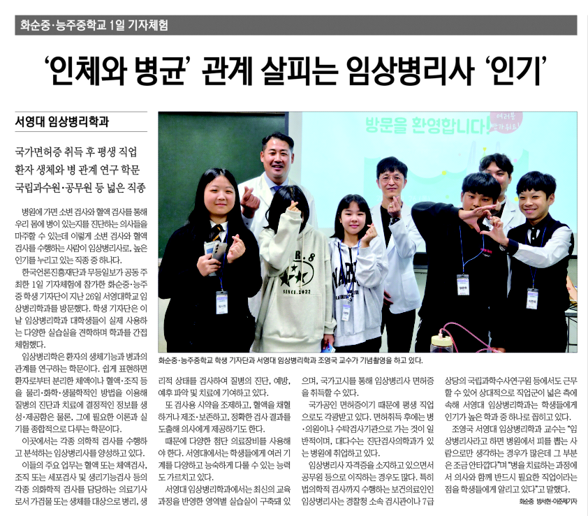 서영대 임상병리학과 “화순중·능주중학교 1일기자체험” 실시