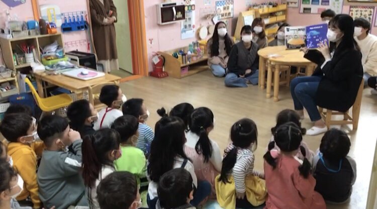 문산 예림어린이집에 방문하여 예비 보육교사인 보육실습을 마친 학생들이 어린이집 원생을 대상으로 멸종위기 동물과 환경에 대한 환경교육 재능기부 봉사활동을 진행하였습니다.