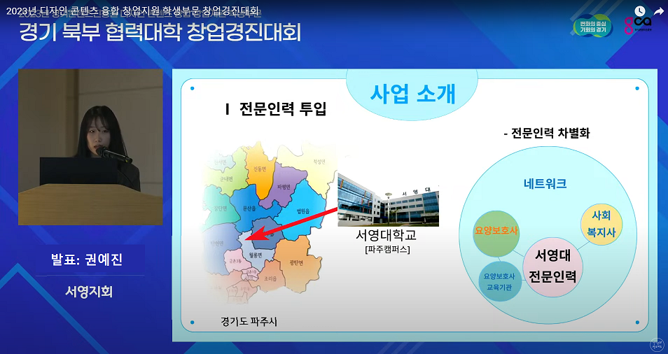 안녕하세요 사회복지행정과입니다! 기쁜소식을 전합니다~ 지난 11월 10일(금) 경기도콘텐츠진흥원에서 진행하는 대학 창업 경진대회에서 사회복지행정과 자원봉사 동아리 “두드림” 팀원 김규태, 권예진, 탁은희 학생이 장려상을 수상하였습니다.
