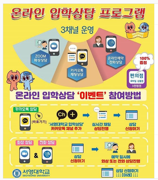 카카오톡상담온라인 예약 전화상담ZOOM 화상상담위의 세가지 중 원하는 방법으로 상담 받으면 이벤트 참여 완료!편의점 모바일 상품권 100% 증정입니다.(물리치료과 상담도 기다리고있어요